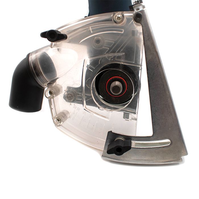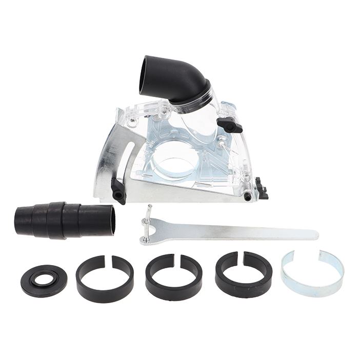 Transparent Precision Cutting and Dust Control Set. Ø 115mm (4 1/2") and Ø 125mm (5") Transparent housing for cutting tool visibility. Precision setting for controlled cutting depth. Contains: Cutting & dust control set, dust stud to connect the vacuum cleaner, 4 connection sleeves for most angle grinder, 2 pin spanner, flange nut