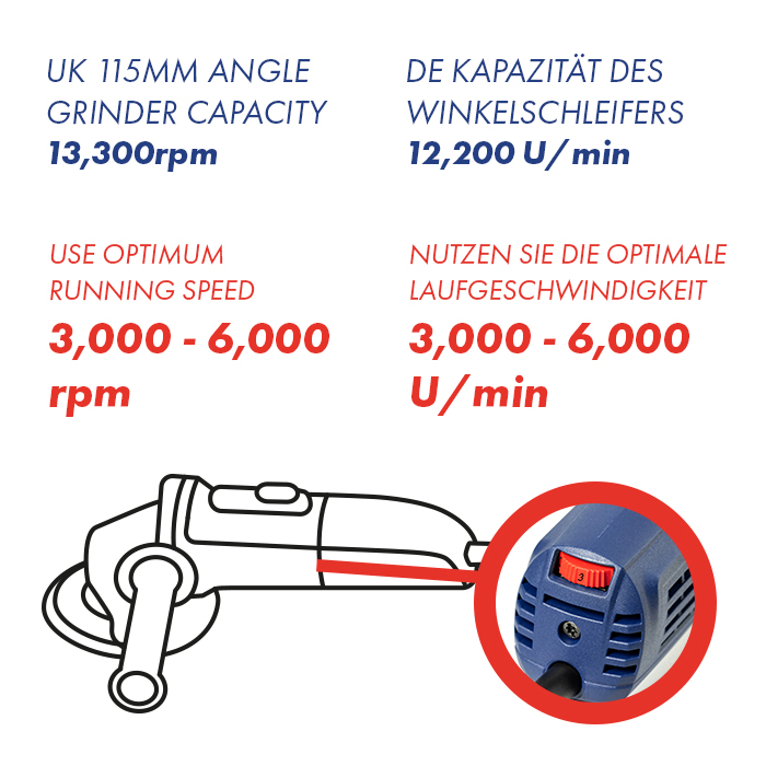 Outlasts conventional sanding discs by up to 100x. Suitable for use on all standard angle grinders at 8000-13000rmp. or optimal use of the DP850, set your grinders speed to 3000-6,000rpm. Available in Coarse Grit #50 and Ultra Fine Finish #400.